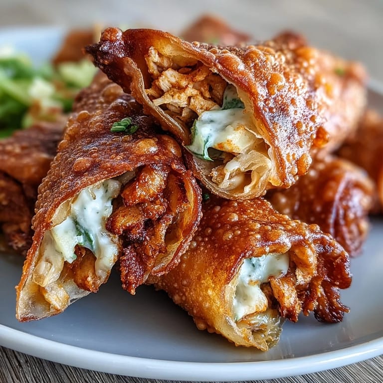 Save The smell of buffalo sauce and fried dough hit me the second I walked into my friend's kitchen during a playoff party. She was pulling these golden, crackling egg rolls out of hot oil, and I couldn't stop eating them. By halftime, I'd had four and was already planning to make them myself. I went home that night with a scribbled recipe on a napkin, and I've been making them ever since.