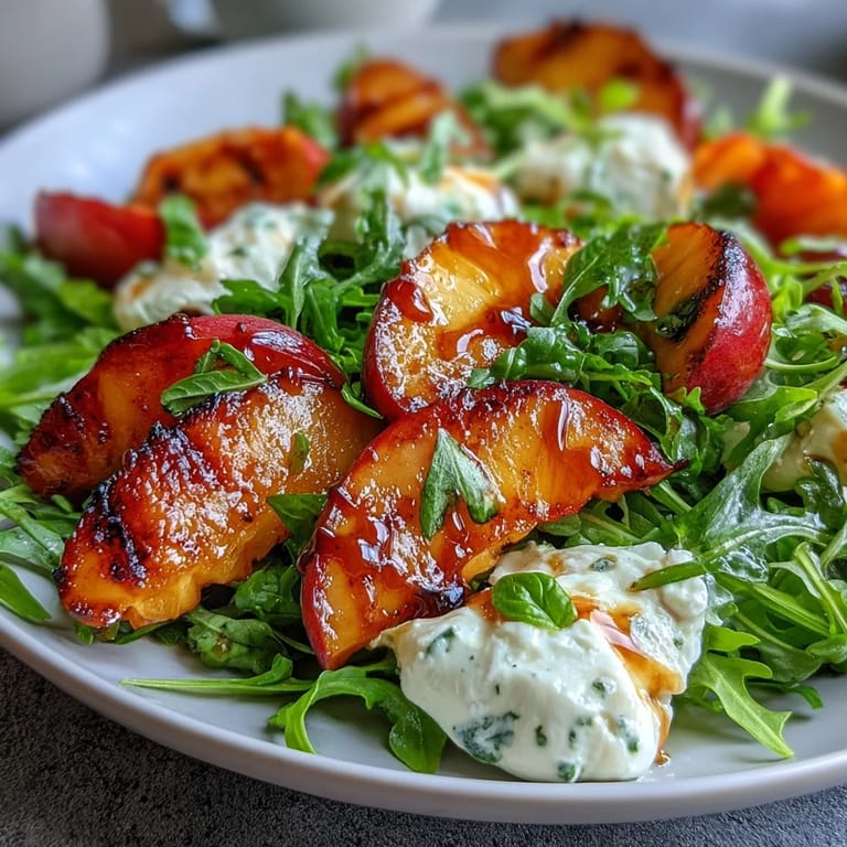 I served this salad for a backyard picnic with friends, and the sound of laughter rose over the clatter of tongs flipping peaches. As I drizzled honey around the burrata, someone asked if the peaches were really grilled, and when I confirmed, their eyes widened—the discovery seemed to surprise the table. The flavors drew everyone in, prompting a round of questions about how easy it was to make. More importantly, the salad disappeared so quickly I almost regretted not making a double batch. I remember the sunlight catching the honey mid-pour, turning it to gold.