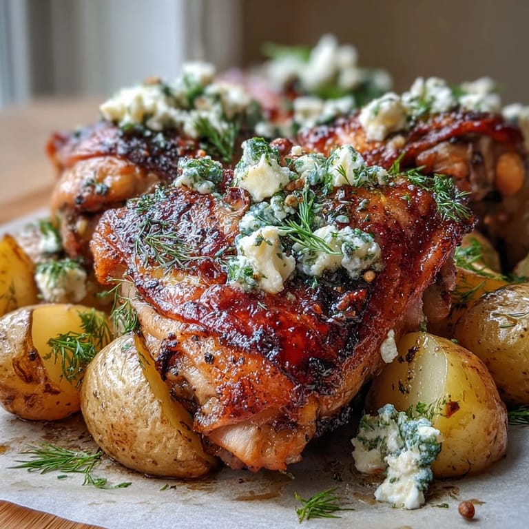 I used to get anxious about whether my chicken was cooked through, so I finally invested in a good meat thermometer. That 75°C target at the thickest part of the thigh is your friend—it takes the guesswork out and gives you perfect, juicy results every single time. The potatoes, meanwhile, should be fork-tender by the time the chicken's done, their edges slightly crispy from the hot pan and all those drippings.